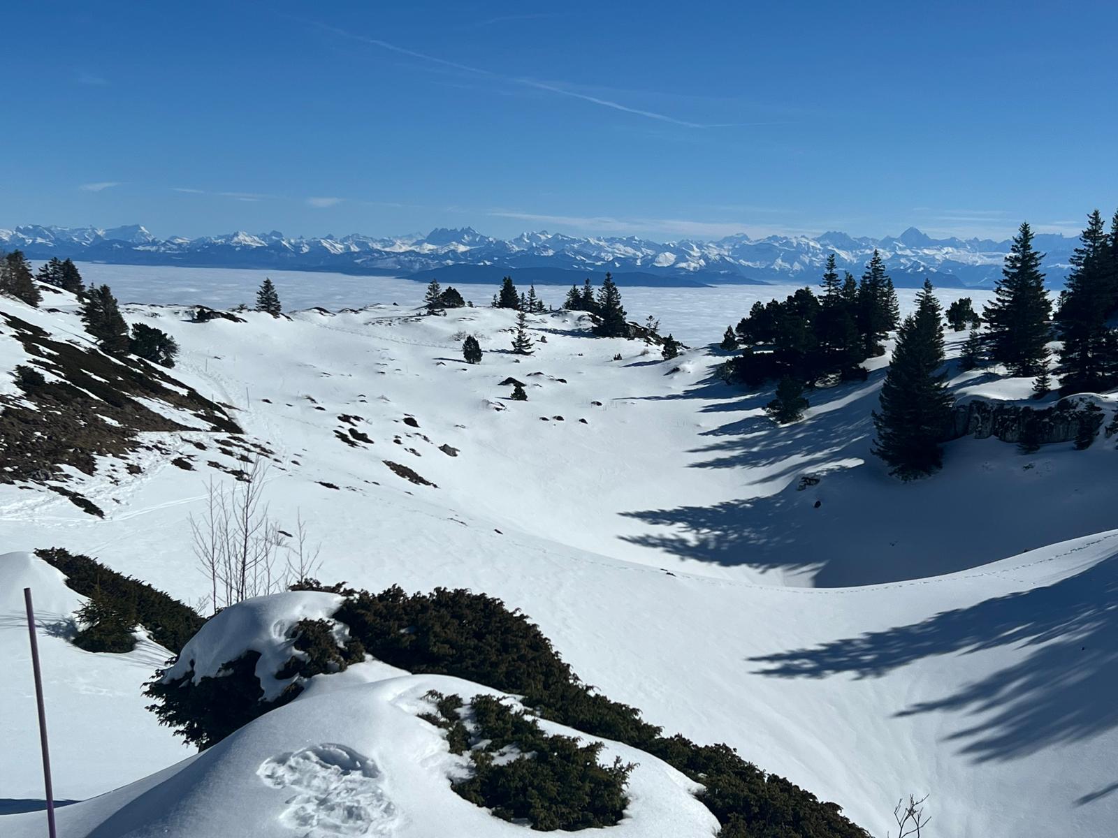 À partir du chalet, partez explorer la montagne : pistes de ski alpin et de fond, randonnées, raquettes, VTT, golf, baignade et pêche à la Valserine. Le Crêt de la Neige et la chaîne des Monts Jura offrent un panorama à 360° sur les Alpes, le lac Léman et Genève.